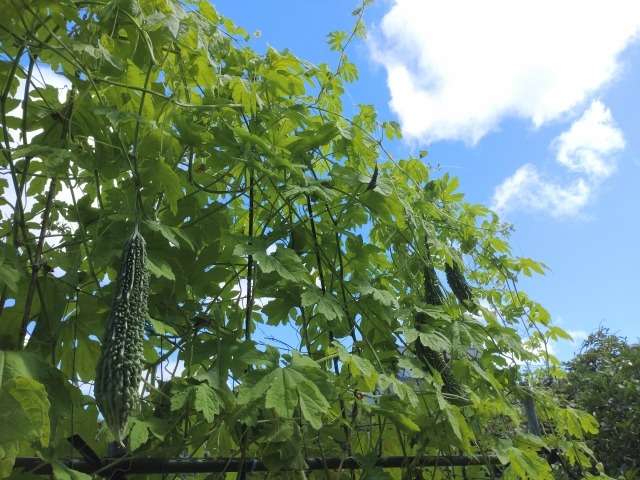 すだれ、植物による緑のカーテンなど